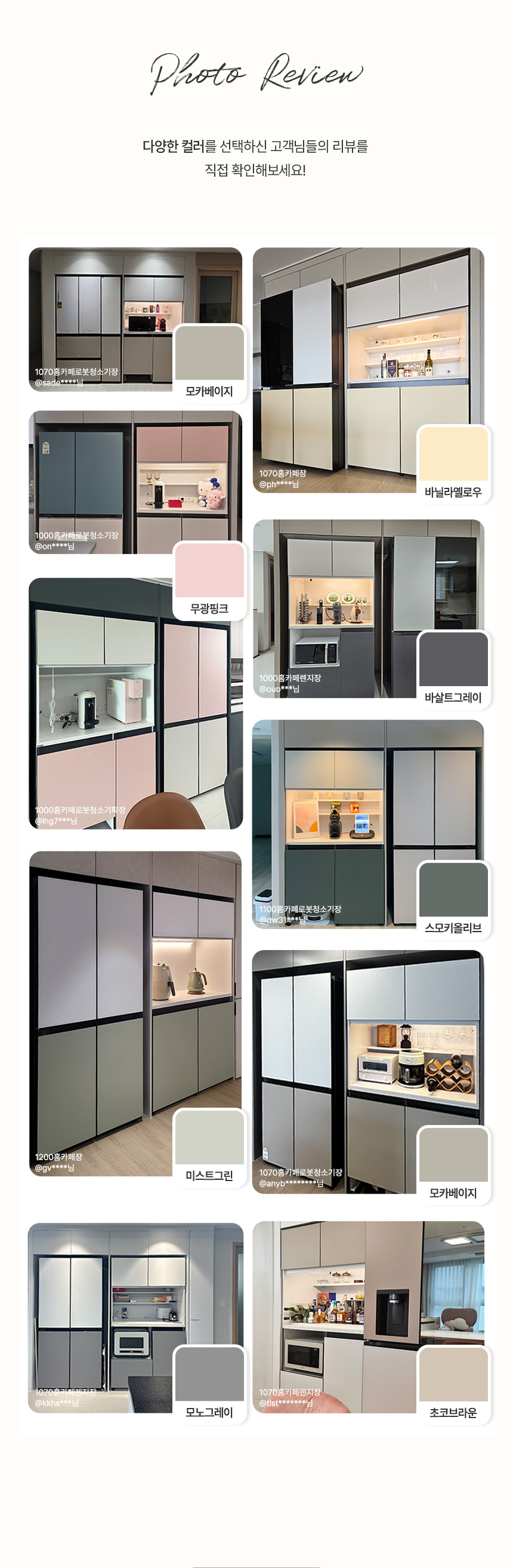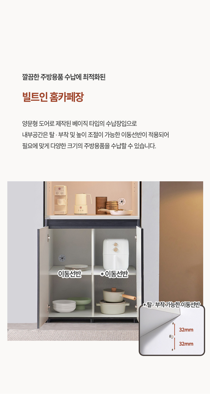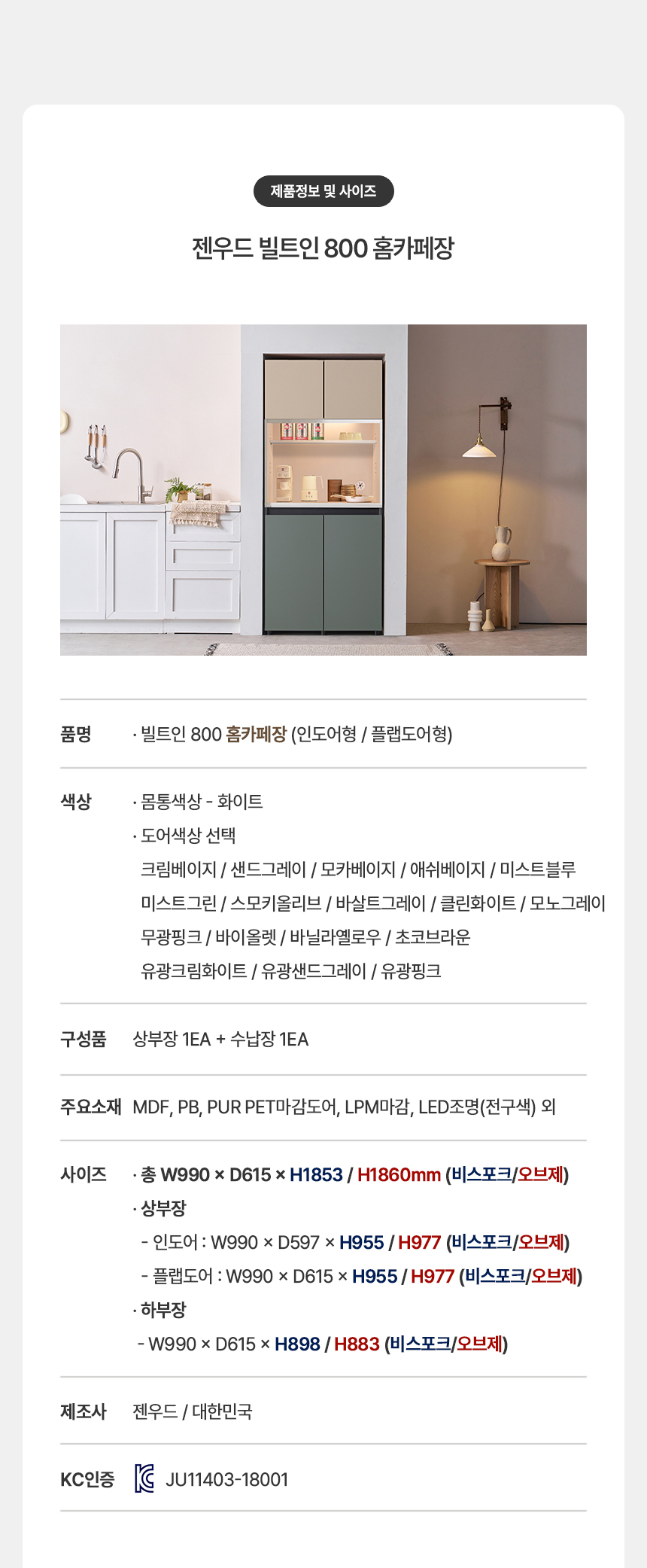 장바구니 구매하기 제품명 옵션 선택 800홈카페장인도어 800홈카페장플랩도어 타입 옵션 선택 1853(비스포크타입) 1860(오브제타입) 색상 옵션 선택 색상변경요청-배송메세지란기재 샌드그레이X샌드그레이 클린화이트X모카베이지 클린화이트X모노그레이 클린화이트X미스트그린 바이올렛X클린화이트 크림베이지X크림베이지 무광핑크X크림베이지 초코브라운X크림베이지 스모키올리브X크림베이지 바살트그레이X크림베이지 클린화이트X클린화이트 + 추가 옵션 선택 EVENT-슬라이드선반추가 옵션 선택 빌트인슬라이드선반 총 상품 금액 0 원 장바구니 구매하기