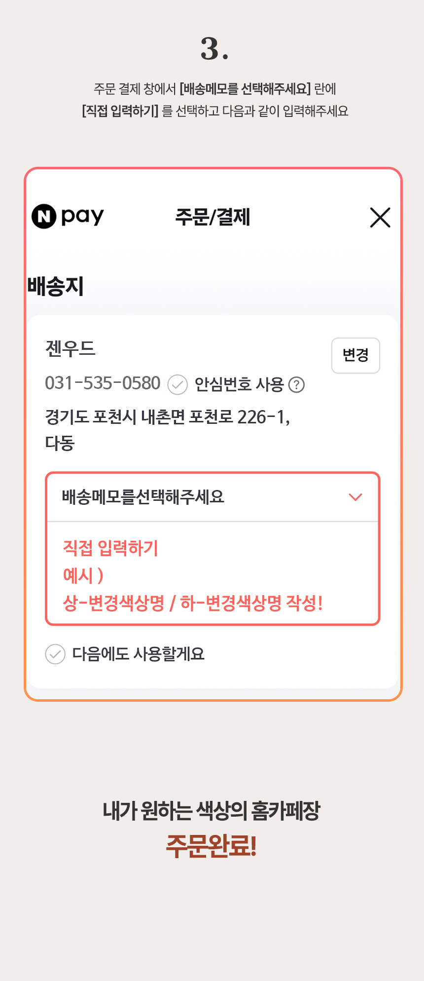 주문금액에 상관없이 배송비가 착불로 청구됩니다.