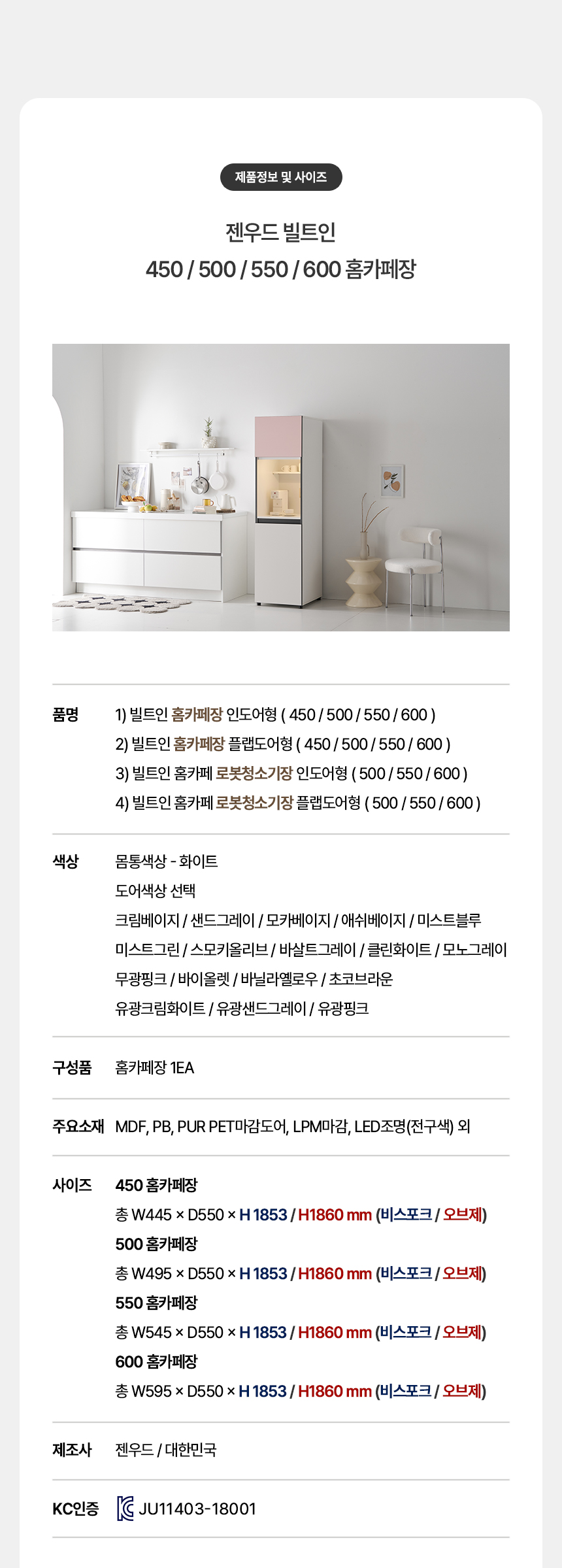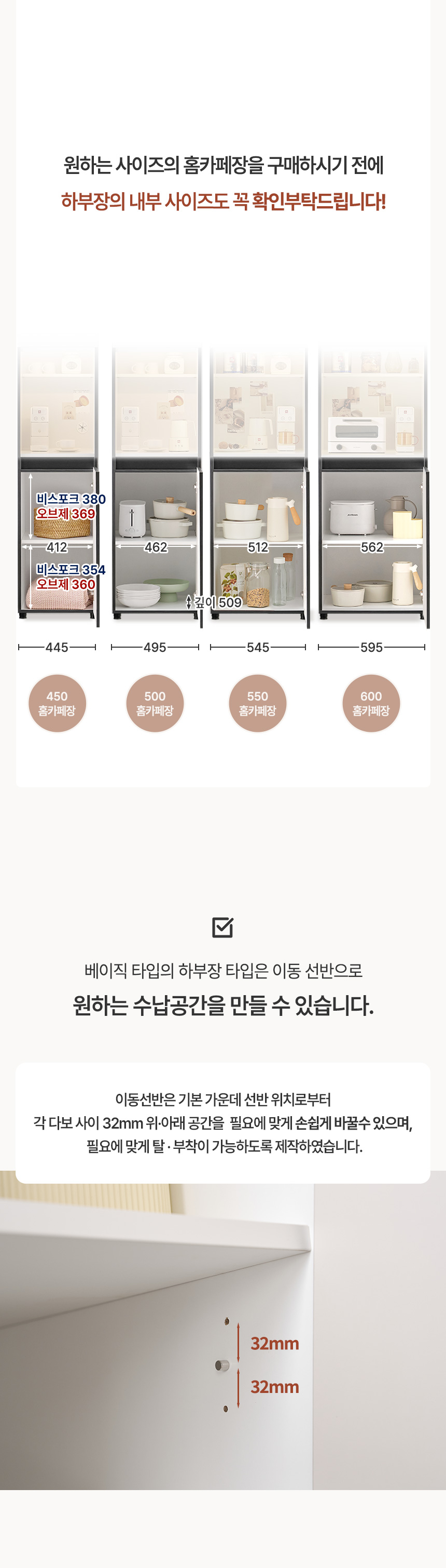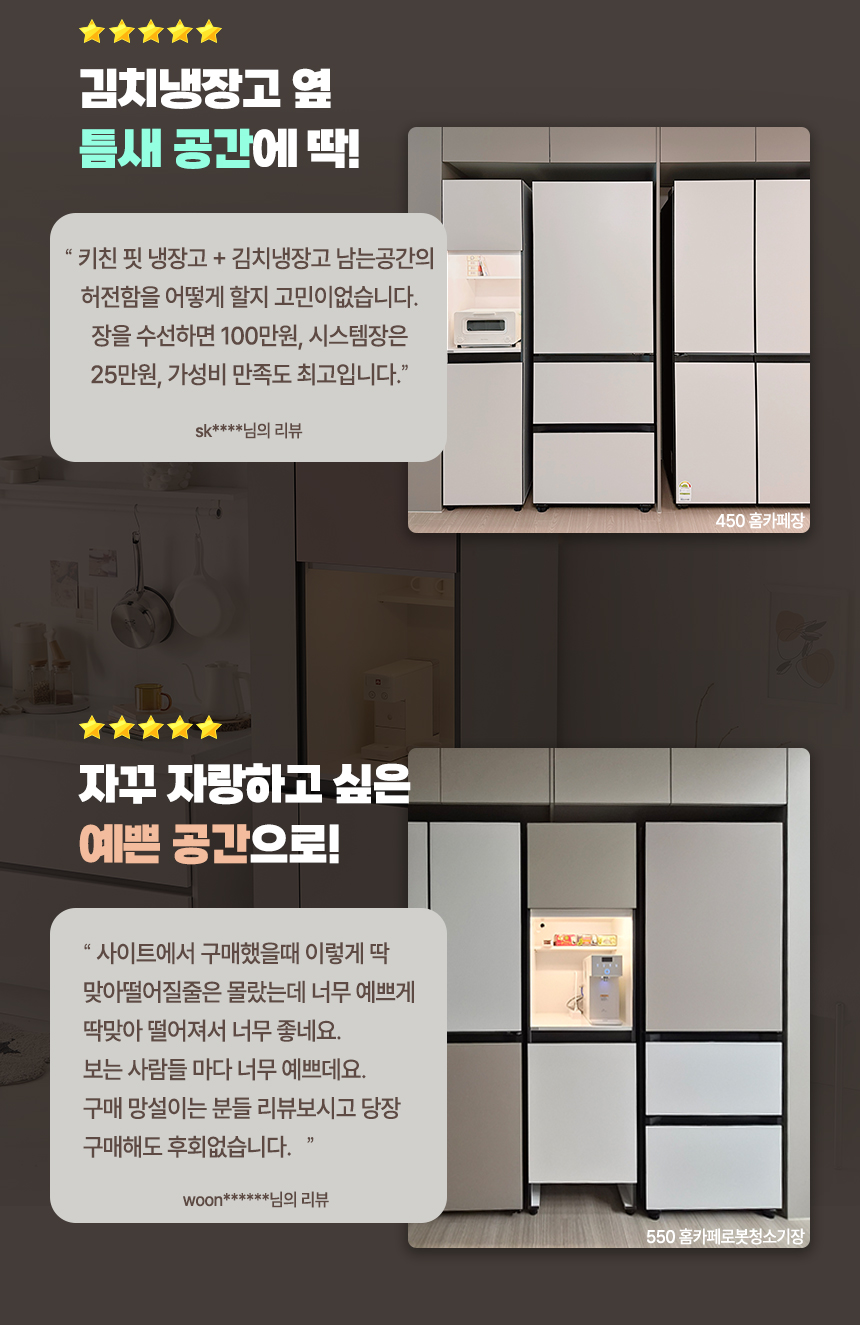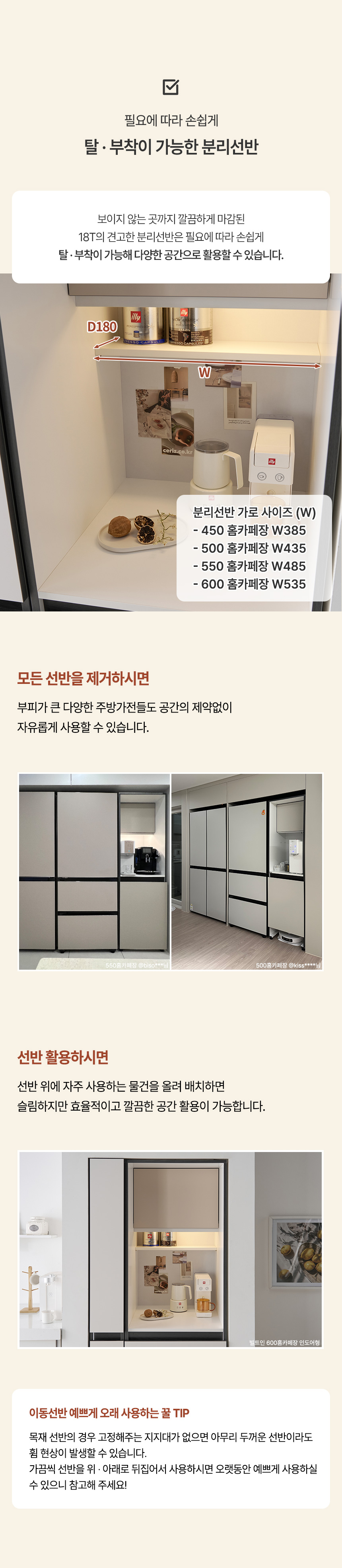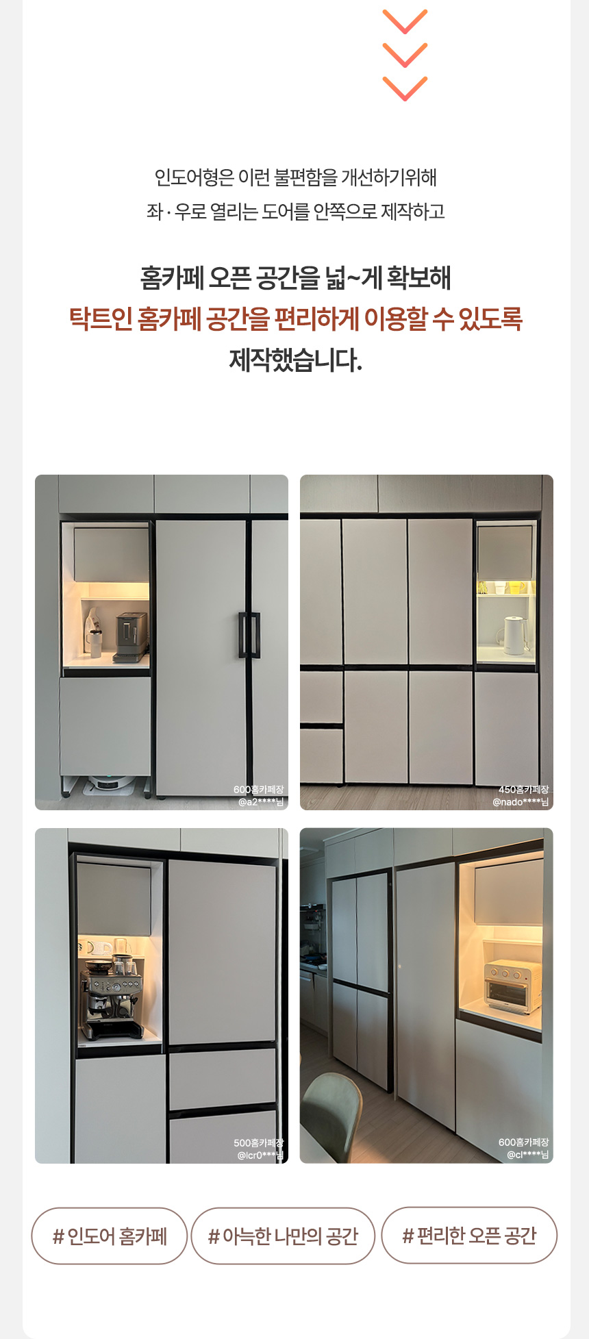 빌트인 홈카페수납장 450 500 550 600 홈카페장 주방 냉장고장 수납장